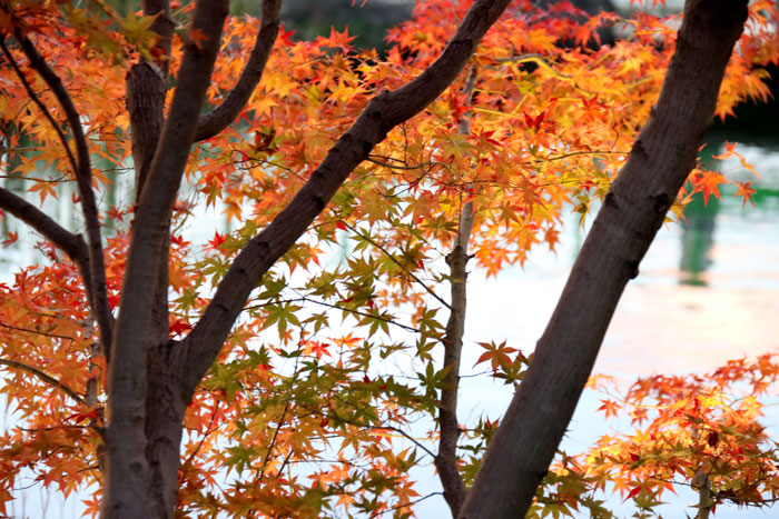 今年最後の紅葉でした。池に写る紅葉が美しかったです。