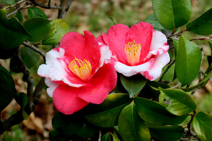 赤と白の混じったツバキが好きですね。