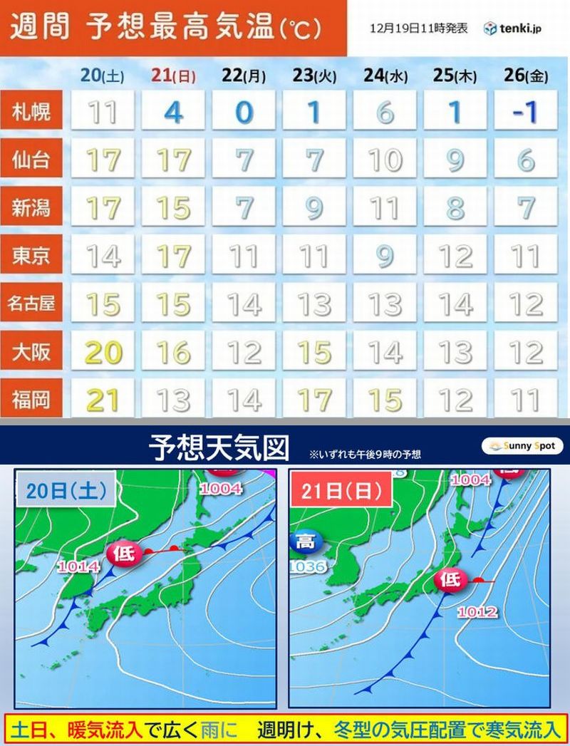 予報ではこの先は、冬らしくなく、太平洋側でもたびたび雨が降るようです。